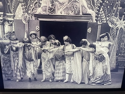 Malgré la richesse des œuvres, cette exposition déstructurée mélange « les orientalismes » sans crier gare. Après les hommes d’affaires, qui ont succédé aux superbes tableaux de Henri Matisse, Eugène Delacroix ou Jean-Auguste-Dominique Ingres, on enchaîne avec ces créateurs de spectacles qui connaissent un grand succès au début du XXe siècle. Cinéastes et chorégraphes inventent un orientalisme fantasmé et érotisé. Georges Méliès (1861-1938) est ainsi l’auteur d’un film intitulé Le Palais des mille et une nuits.