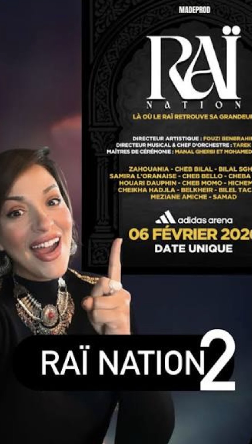 Le 6 février 2026, Raï Nation 2 transforme l’Adidas Arena en vaste scène consacrée au raï, musique populaire algérienne née à Oran et devenue, au fil des décennies, l’un des langages musicaux les plus fédérateurs du Maghreb et de ses diasporas.